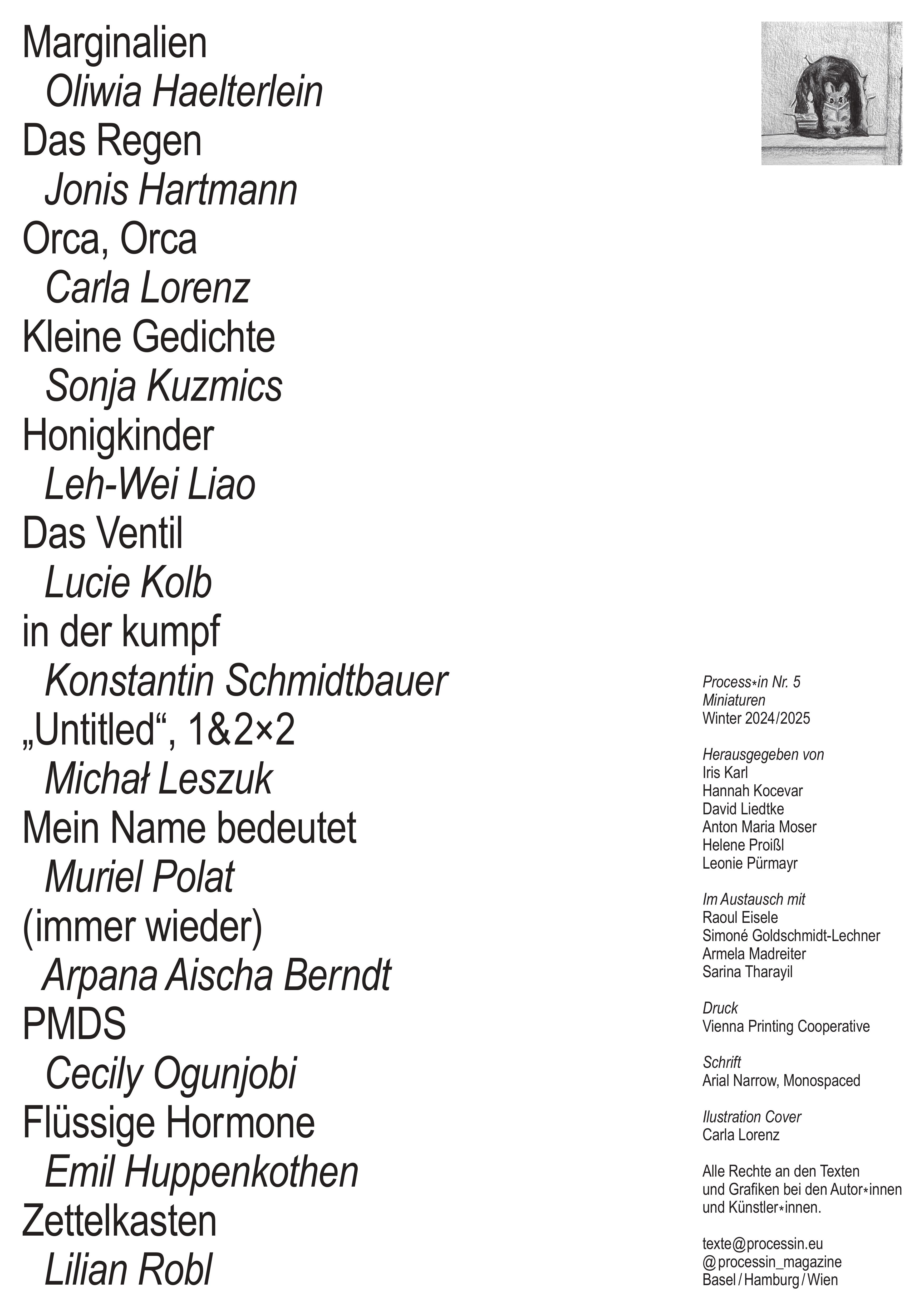 Die Ausgabe hinterfragt die Verhältnisse innerhalb des Betriebs, versucht sich darin textlich zu verorten und gibt den Autor*innen Raum alles offen zu äußern, was ihnen am Herzen liegt. Textlich bewegt sich die Ausgabe zwischen Essays, Streitschriften, Prosaischem und Lyrischem. Mit Beiträgen von Jonas-Philipp Dallmann, Julia Knaß, Michèle Yves Pauty, roomtexte, Mati Shemoelof uvm.